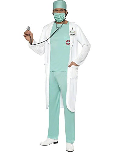 Smiffys Costume da dottore, bianco,con parte superiore, pantaloni, cappello, maschera, m