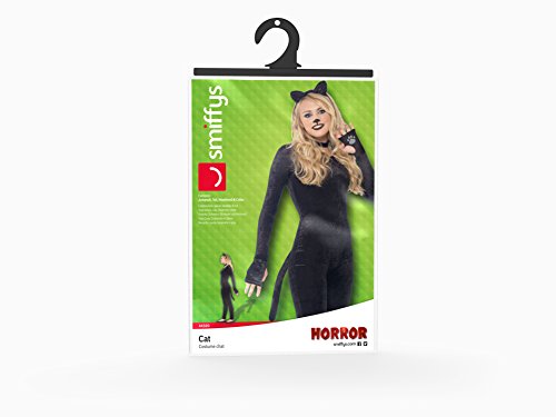 Smiffys Costume Gatto, Nero, comprende Tuta, Coda, Cerchietto con Orecchie Feline e Coll, Small