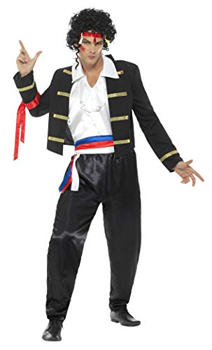 SMIFFYS Costume New Romantic anni '80, nero, con giacca, pantaloni, camicia e fascia per capelli