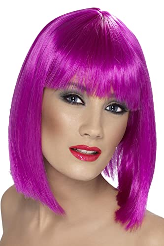 Smiffys Parrucca Seducente, Viola Fosforescente, Corta, Scalata con frangetta