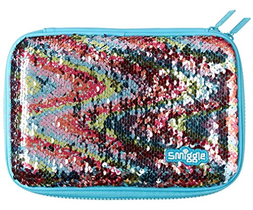 Smiggle Astuccio portapenne rigido, con paillettes, blu con paillettes arcobaleno reversibili.