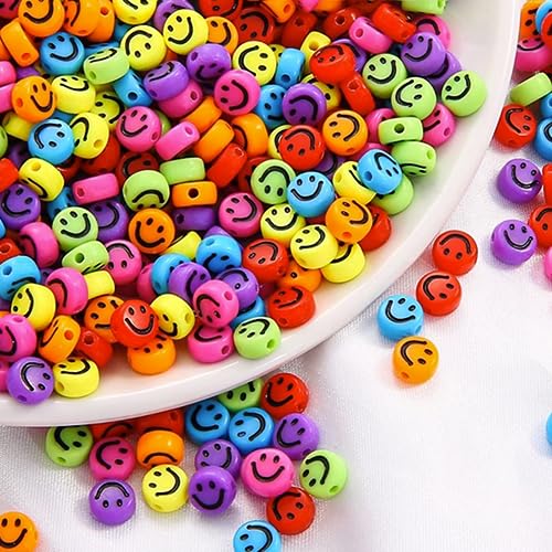 Smile Perline, ZesNice 600 pz Colorate Perline Smiley con Cavo Elastico da 8M Perline Acrilico, Perline per Braccialetti, Perline per Bigiotteria Fai da Te