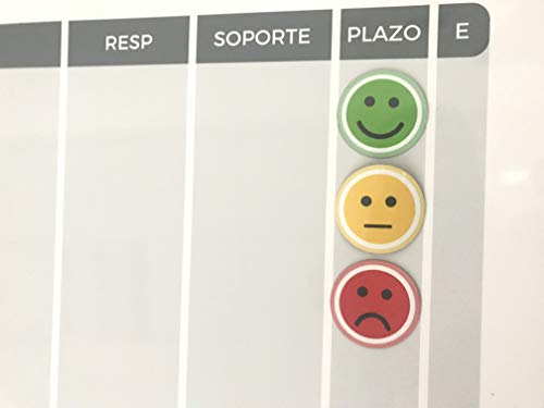 Smiley magnete rotondo. Confezione da 25 (10 verdi, 10 rossi e 5 gialli) Magnetico (5 cm)