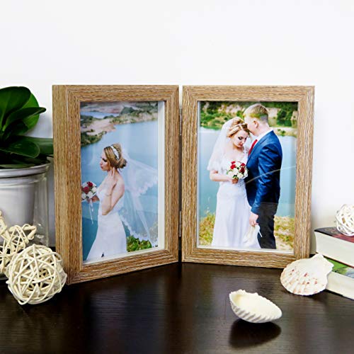 Smiling Art Cornice per 2 Foto in Legno MDF con Vetro, Cornice Pieghevole, Doppia Cornice (Marrone, Formato Ritratto, 2 x 10 x 15 cm)