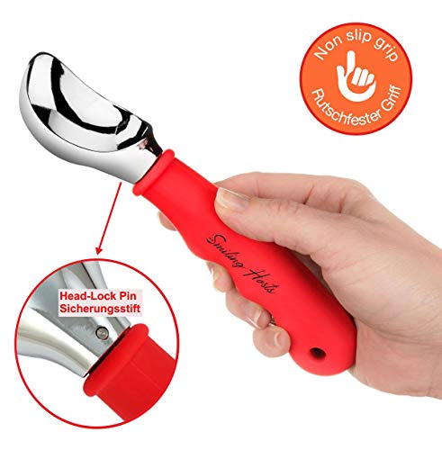 Smiling Hosts Paletta Gelato con Comoda Maniglia in Gomma - Porzionatori da Gelato o Impasto per Biscotti - Perfetta vestibilità e Paletta Piacevole