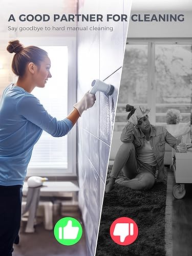 【Pulizia Facile & Potente】Dite addio al noioso strofinamento e lasciate che sia la spazzola a fare il lavoro per voi. La spazzola elettrica per la pulizia è dotata di un motore ad alta potenza che offre prestazioni di pulizia eccezionali. Affronta lo sporco ostinato, la sporcizia e le macchie con facilità, risparmiando tempo e fatica.