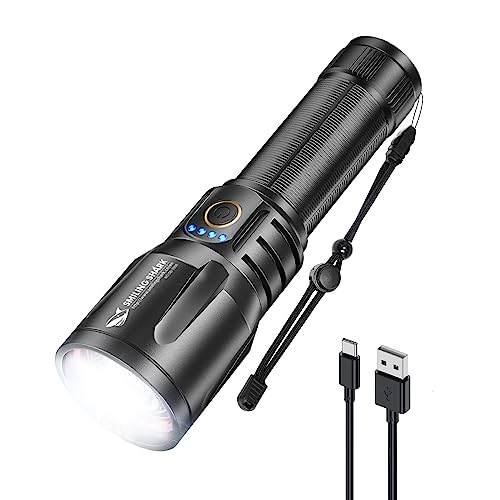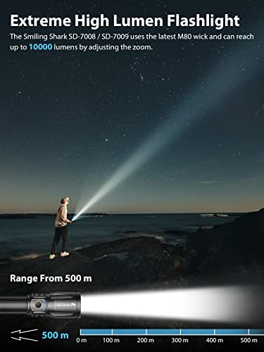 Smiling Shark Torcia, Flashlight LED Ultra-Luminosa Con 10000 Lumens SD-7008 per Camping Hiking Outdoor, Torce Tattica Militare Impermeabile Zoomabile Ricaricabile, Torcia-LED-Torce-Potente-Flashlight