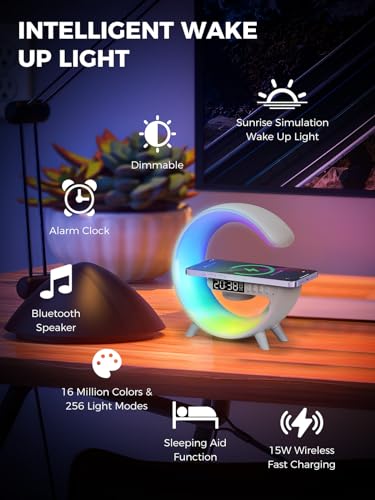 "【2023 Nuova Wake Up Light】È possibile regolare i livelli di luminosità, scegliere tra una varietà di colori e utilizzare un lettore bluetooth per creare un ambiente personalizzato nella vostra camera da letto. Alcuni modelli offrono anche uno spettro completo di colori, consentendo di selezionare le tonalità che si adattano al vostro umore. "