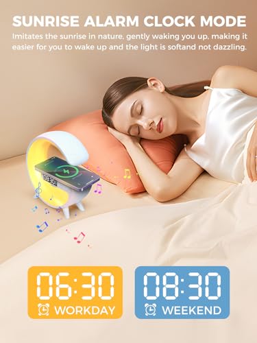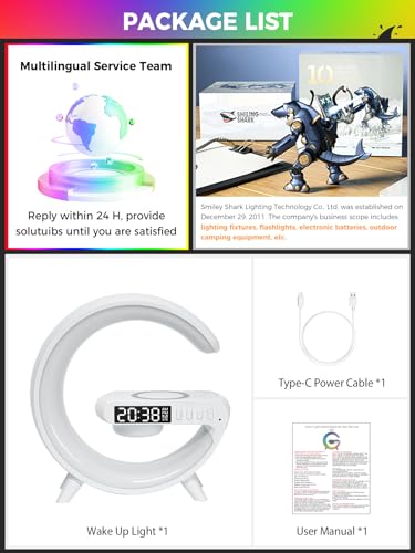 Smiling Shark Wake Up Light, Sveglia Luce LED Intelligente【Piccolo Bianco】Con Altoparlante Bluetooth & Ricarica Senza Fili 16 Milioni di Colori Per Adulti & Bambini, Luce-Sveglia-da-Comodino