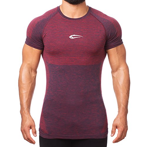 SMILODOX Slim Fit T-Shirt a Manica Corta Camicia Funzionale degli Uomini di 'Accent' Senza Soluzione di continuità per Lo Sport Fitness Gym & Training Shirt