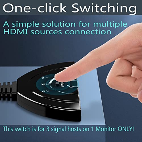 ★【3 In 1 Out con Interruttore】Collega contemporaneamente 3 dispositivi sorgenti a vari dispositivi HDMI. Seleziona il dispositivo che desideri utilizzare con il pulsante, con una commutazione fluida dello schermo e una garanzia della sicurezza del dispositivo.