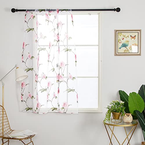 Smithoom 1 Pannello Tenda a Pacchetto Stampa a Fiori Trasparente Tulle Tende per Soggiorno Camera da letto Balcone Cucina Bagno Rosa 100x120cm