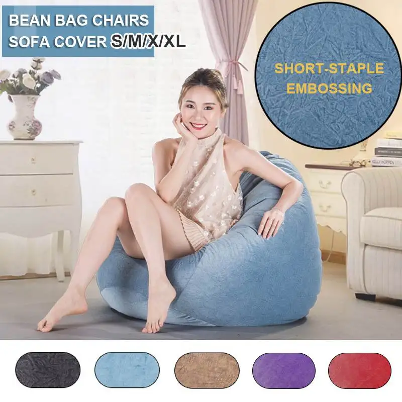 S/M/L/XL Bean Bag Sofa Cover Short-staple Embossing Lazy Sofas Cover Without Filling Lounger Seat Bean Bag Living Room Furniture