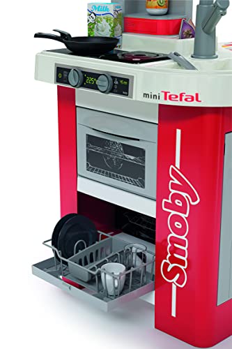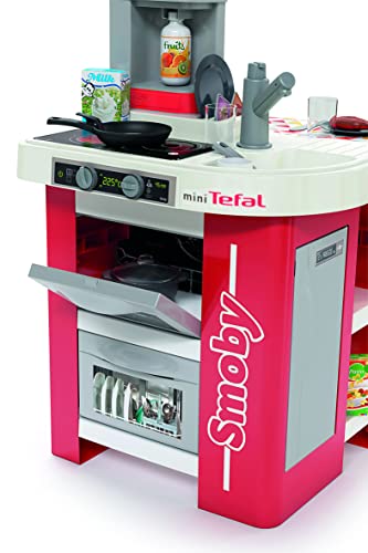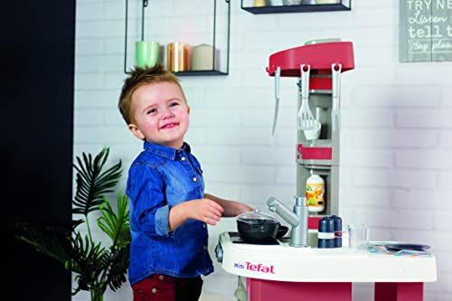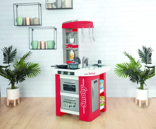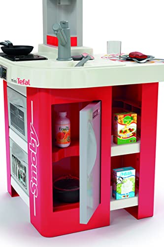 Smoby- Cucina Studio Bubble Red,7600311055, 3 anni, 26 accessori, effetto acqua che bolle, colore rosso, made in France