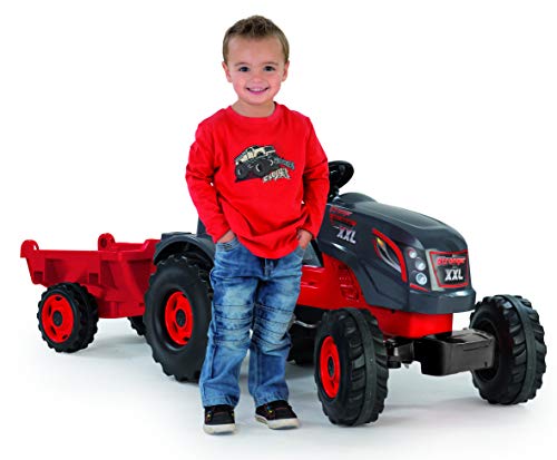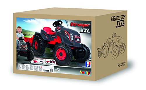 Smoby - Trattore Trattore Stronger Xxl Rosso, 7600710200, + 3 Anni, con Benna e Rimorchio