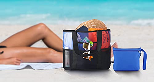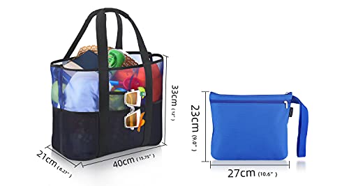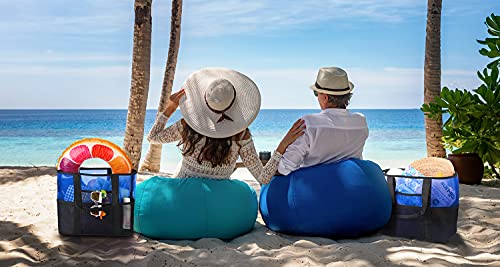 Smof Borsa da Spiaggia Grande, Borsa Mare xxl con 12 Tasche, Borsa a Rete da Spiaggia, Borsa Giochi Mare Spiaggia, Borsa Mare Impermeabile per Vestiti, Giocattoli, Asciugamani, Palestra, Piscina-blu