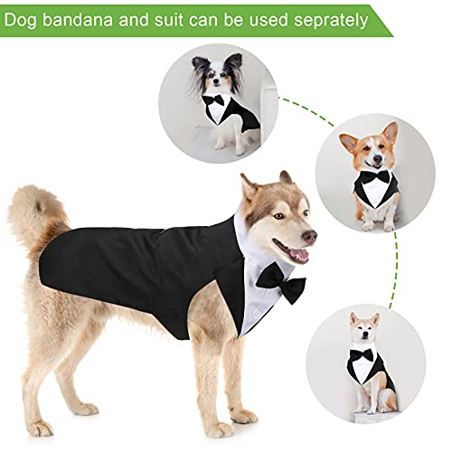 Smoking per Cani Set Tuta per Cani e Bandana Smoking Formale per Cani Abito da Feste Matrimonio per Animali Domestici Camicia con Papillon Matrimonio per Halloween Compleanno Costumi (XXL)