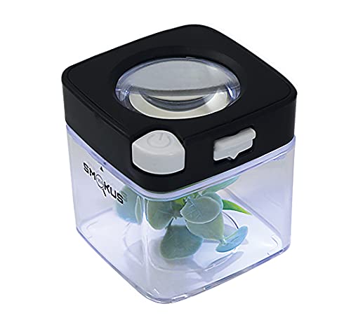 Smokus Focus Comet - Barattolo portaoggetti con lente d'ingrandimento, luci a LED, colore: nero