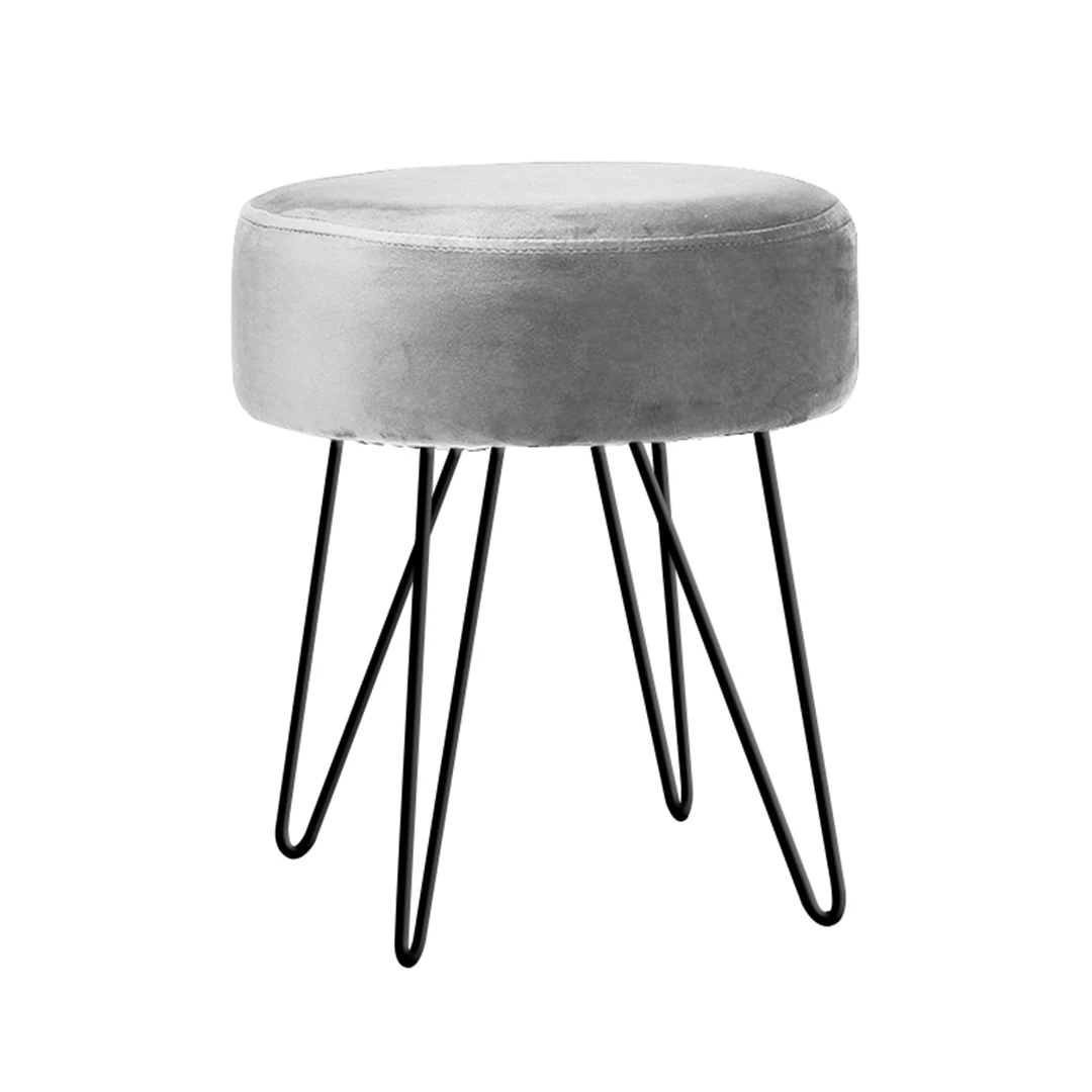 Smooth Grey Velvet Dressing Stool Bench Round Hairpin Chair Comfortable Luxurious Velvet Cushion For Bedroom Dresser Furniture