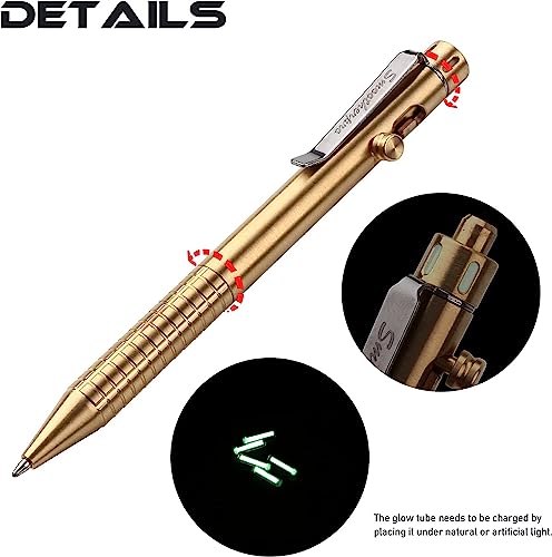 SMOOTHERPRO Penna a Sfera in Ottone Massicciocon EDC Bolt Action Penna con 5 Tubi Fluorescenti Compatibile con le Ricariche Parker Pesante per Tremori Artrite Parkinson Mani Colore Naturale(CG501)