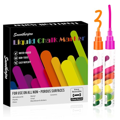 SMOOTHERPRO Pennarelli a Gesso Liquido Set di Pennarelli per Lavagna 8 Colori Pennarelli Cancellabili a Secco per Segni di Lavagna Finestra e Vetro(CMP008)
