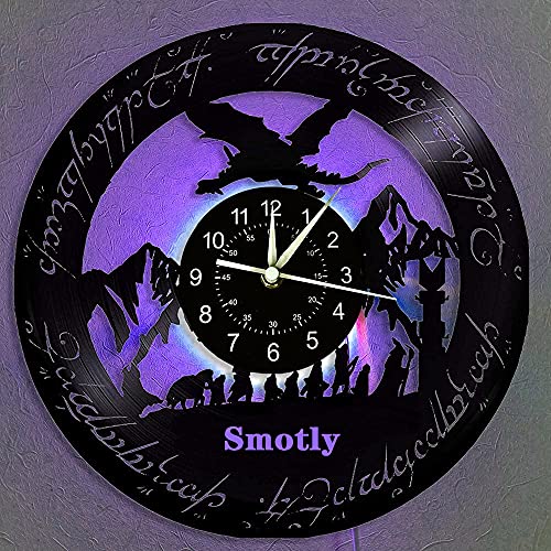 Smotly Orologio da Parete in Vinile, Signore degli anelli, con funzione di luce notturna colorata, creatività fatta a mano, digitale da parete con, idea regalo