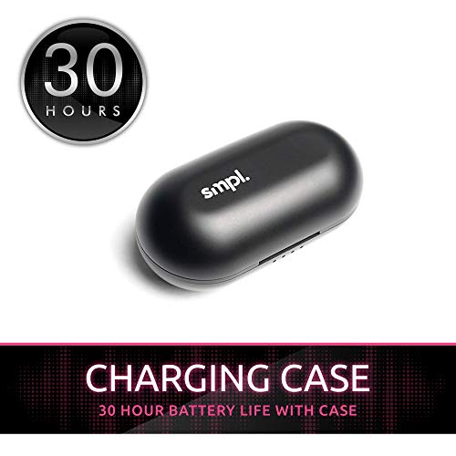 Smpl Auricolari True Wireless Premium - Auricolari Bluetooth 5.0, 30 ore di riproduzione audio, controllo touch, audio stereo, microfono integrato - Nero
