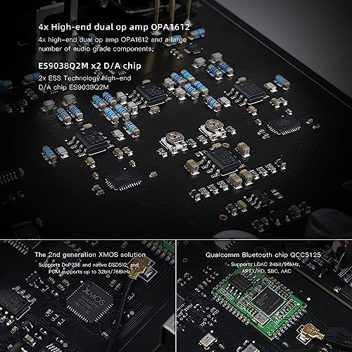 【ES9038Q2Mx2 e OPA1612x4】Usa 4 x dual op amp OPA1612 e D/A 2 x chip ES9038Q2M. La soluzione XMOS di seconda generazione supporta Dop256 e DSD512 nativo.