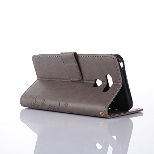 SMTR Wallet Cover Per Huawei Honor 6C, Custodia Per Huawei Honor 6C - Retro Flowers Design Pattern Custodia In Pelle Con Wallet Case Cover Per Huawei Honor 6C (Grigio)