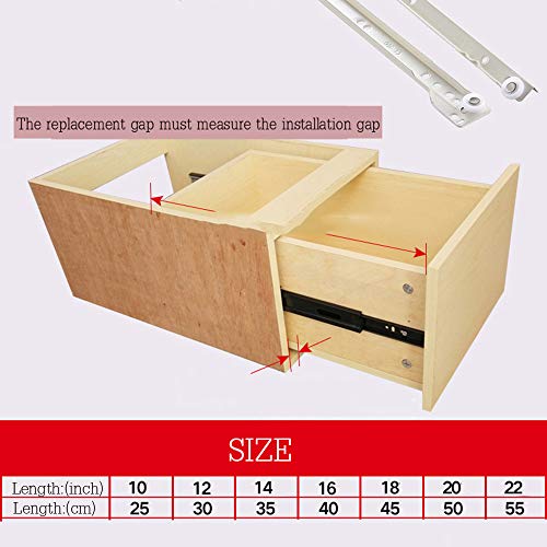 SMYH 1 Paio (2 Pezzi) Guide per Cassetti per Europei, Montaggio Laterale/Inferiore, Verniciatura Bianca a Polvere,con Ruote, 25cm,30cm,35cm,40cm,45cm,50cm,55cm