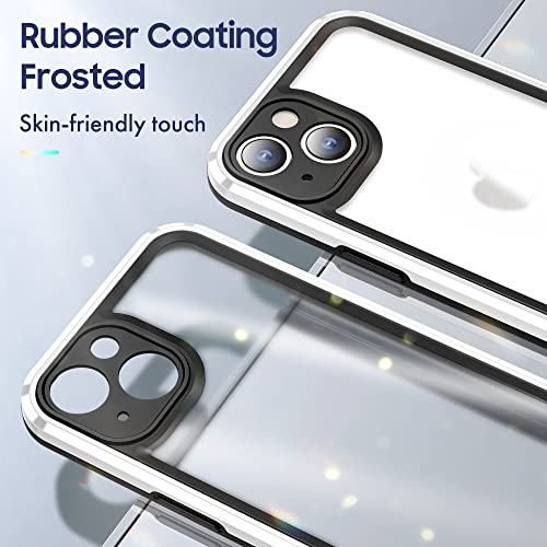 SMYTU Cover per iPhone 14 6.1" con Vetro Temperato,Custodia Trasparente Rugged Glassato Hard PC retro con flessibile TPU Bumper - Nero/Bianco
