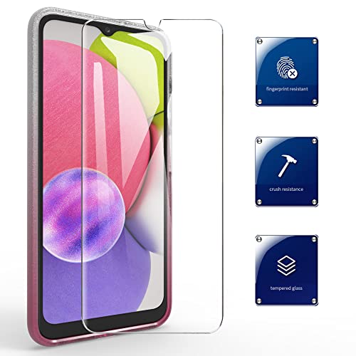SMYTU Custodia per Samsung Galaxy A03S + Pellicola Vetro Temperato,Ultra Sottile Morbido TPU Silicone Brillantini Glitters Case per Samsung Galaxy A03S - Rosa