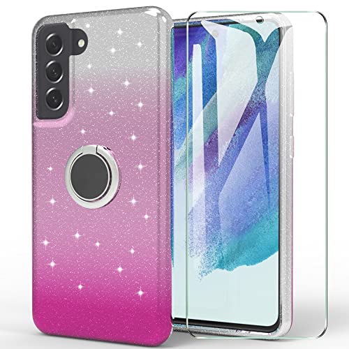 SMYTU Custodia per Samsung Galaxy S21 Fe 5G + Pellicola Vetro Temperato,Ultra Sottile Morbido TPU Silicone Brillantini Glitters Case per Samsung Galaxy S21 Fe 5G - Rosa