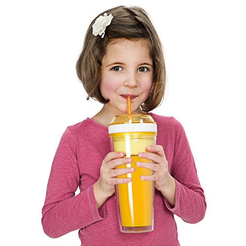 Contenitore per snack nella parte superiore e bottiglietta in quella inferiore.