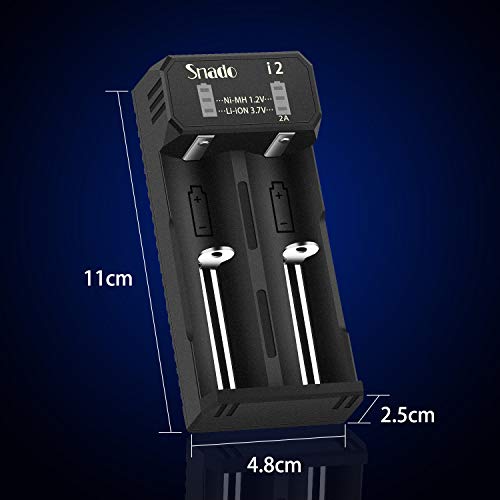 Snado 18650 Caricabatterie Universale Intelligente per Batterie Ricaricabili Li-ion Batterie 18650 18490 18350 17670 17500 16340 14500, Ni-MH/Ni-Cd A AA AAA Batterie (2 Slot)