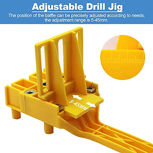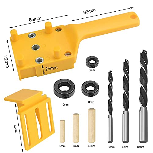 SNAGAROG Kit di Guida per Spinatura Legno 6/8/10 mm Dima Morsetto per Spinatura Legno Guida per Fori a Tasca Dima per Tasselli in Legno Regolabile Dima per Fori a Tasca per Legno Fai Da Te (Giallo)