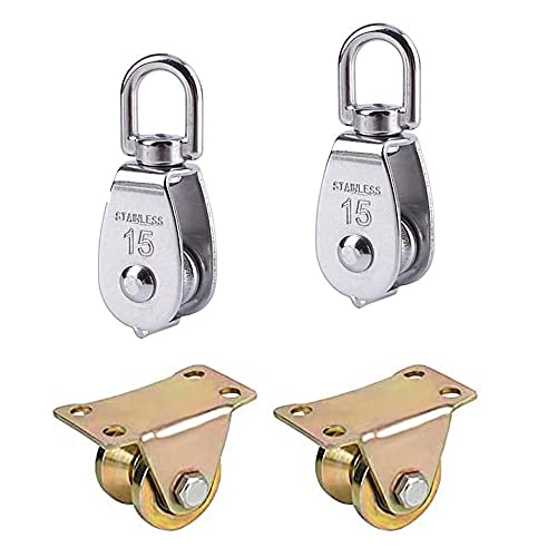 SNAGAROG 2 Pz M15 Puleggia Singola Blocco Carrucole Puleggia Rullo di Carico con 2 Pz Puleggia con Cuscinetto Puleggia Carrucola a V per Corde Interne ed Esterne, Garage, Tende