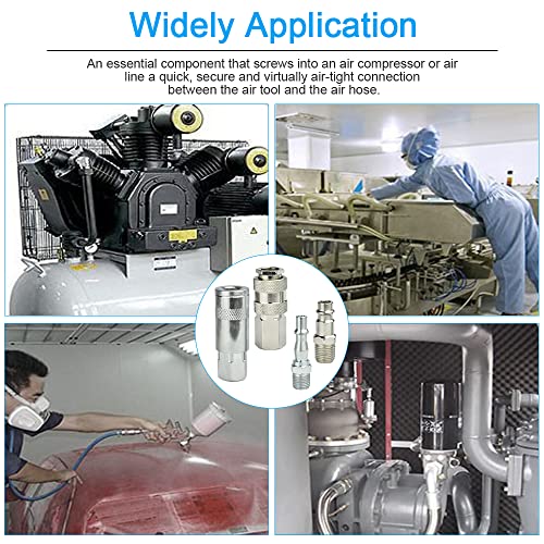️【Prestazioni elevate】 Connettore rapido aria compressa BSP da 1/4" realizzato in materiale metallico ad alta durezza e trattamento zincato, antiruggine, anticorrosione e non facile da rompere. Filettatura trasparente, pregevole fattura e stabilità affidabile, possono essere usato per molto tempo.