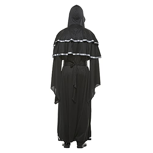 Snailify Uomo Mago Oscuro Medievale Monaco Veste Mistico Padrino Stregone Con Cappuccio Costume Mantello Mantello Halloween Cosplay Nero Argento L