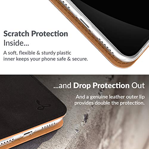 Protezione da cadute e graffi: una custodia in pelle di classe e l'interno in plastica flessibile mantengono il telefono al sicuro ed elegante per tutta la giornata