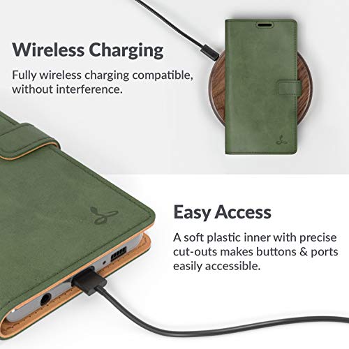 Snakehive Custodia Samsung Galaxy S10 Plus Compact di Custodia a Portafoglio in Pelle Nubuck con Fessura per Carte di Credito e Banconote - (Verde Scuro)