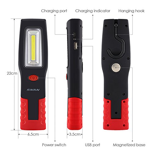 SNAN COB Torcia da lavoro/Torcia/Luce da lavoro - Ciondolo con gancio e Base Con Magnete, batteria ricaricabile