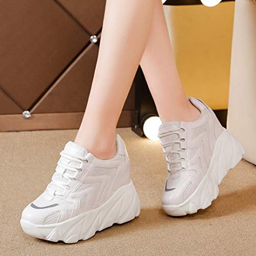 Sneakers a Rete da Donna Primavera Estate Scarpe da Ginnastica Casual con Piattaforma Alta Scarpe Sportive Scarpe con Zeppa da 9 cm Scarpe con Lacci Traspiranti da Donna
