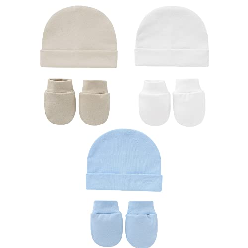Il pacchetto viene fornito con berretti per bambini 3 pezzi + guanti antigraffio per bambini 3 paia, ottimo regalo per bambini da 0 a 3 mesi.