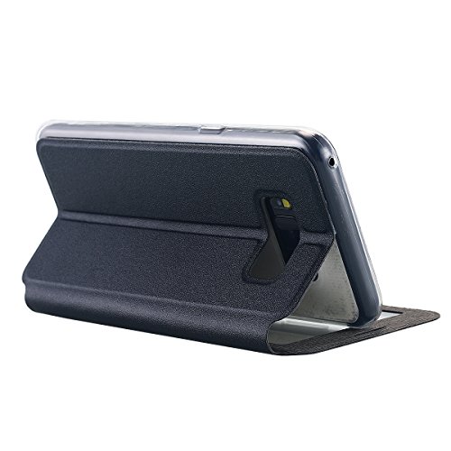 Snewill Custodia Galaxy S8 Plus,Galaxy S8 Plus Case, Slim Thin View Window PU Leather Flip Case with Smart Unlock Metal Slide Touch for Samsung Galaxy S8 Plus - Black