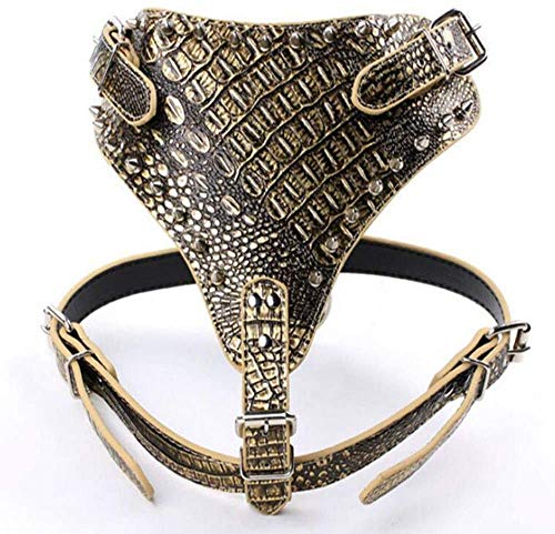 SNFHL Collare, Pettorina e Guinzaglio per Cani con Borchie in Pelle, Kit Coordinato in 3 Pezzi per Bulldog di Taglia Media e Grande,S-Gold Brown