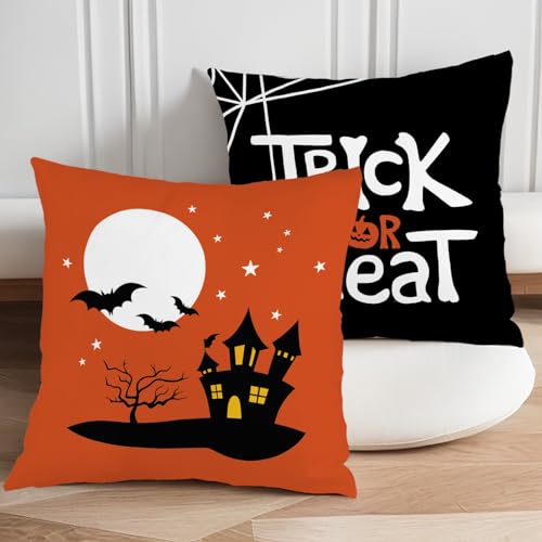 Sniperoal Set di 4 Fodere per Cuscino Halloween, 45 x 45 cm Castello di Zucca Dolcetto o Scherzetto Halloween Federe per Cuscini Decorativi per Divano per Feste di Halloween