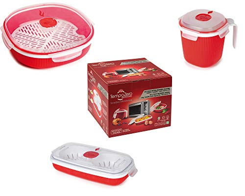 SNIPS Set 3 pz Contenitori per la Cottura al microonde Linea TempoZero: Mug, Cuoci Uova & Omelette, Vaporiera 2 lt, Rosso, taglia unica