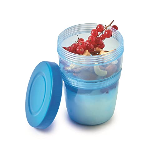 Snips | Porta Yogurt Cereali & Frutta 0,50 LT con doppio scomparto| Colore Azzurro | 9,2 x 9,2 x 13 cm|BPA Free | Made in Italy