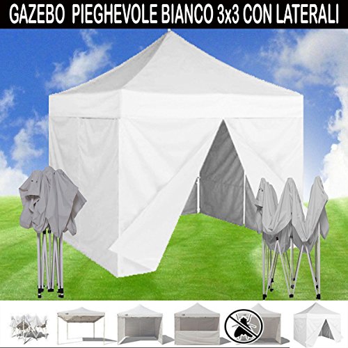 SNODEC Gazebo RAPIDO RICHIUDIBILE Bianco 3X3 M Pieghevole A Fisarmonica Mercato TENDONE Senza Laterali
